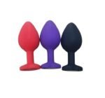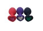 Plug anal médio em siliecone aveludado, com formato de coração, feito em silicone ultra macio, possui em sua base uma pedra lapidada que lembra um diamante colorido, que pode ser trocada.